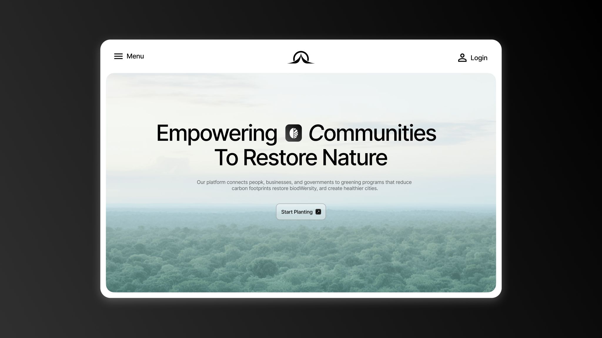 A clean and minimal interface designed to connect communities, organizations, and governments to collaborate on reforestation and sustainability programs.