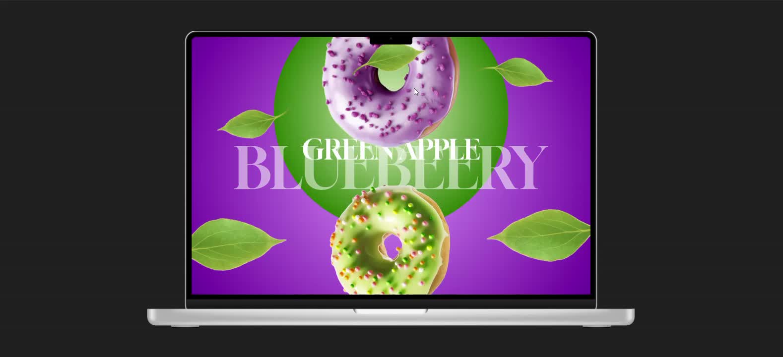 Here’s a glimpse of one of my recent explorations: a vibrant poster series built around flavored donuts—Blueberry, Green Apple, and Caramel.