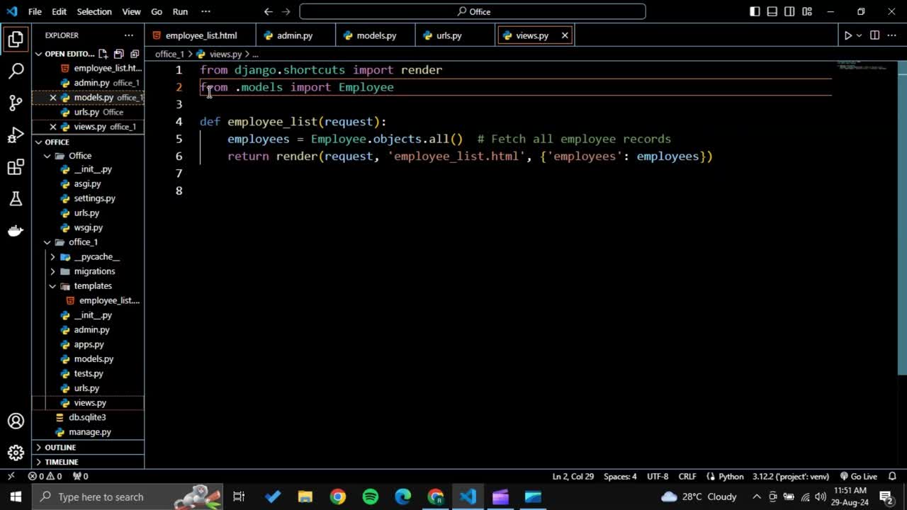 To make the data accessible and user-friendly, I developed an HTML frontend that dynamically displays employee details fetched from the Django backend. The integration between the models and templates allows for efficient data presentation and a better user experience.