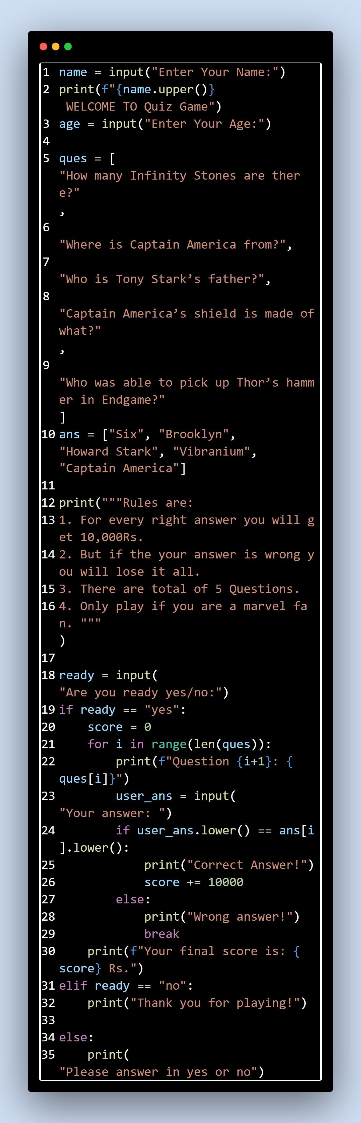 Today, I made a Quiz Game with the help of #python using lists and conditional statements in python.