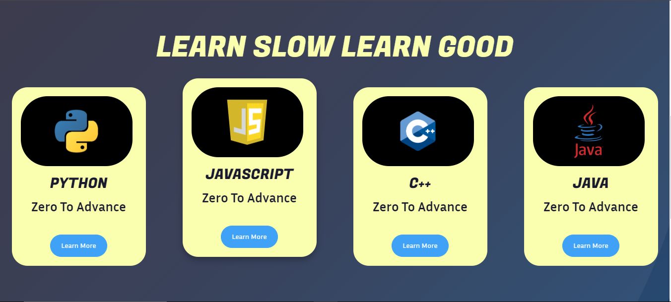 Featuers-->new programming offerings in Python, JavaScript, C++, and Java. Each course is structured to provide a comprehensive learning path, guiding you through the intricacies of programming with ease.